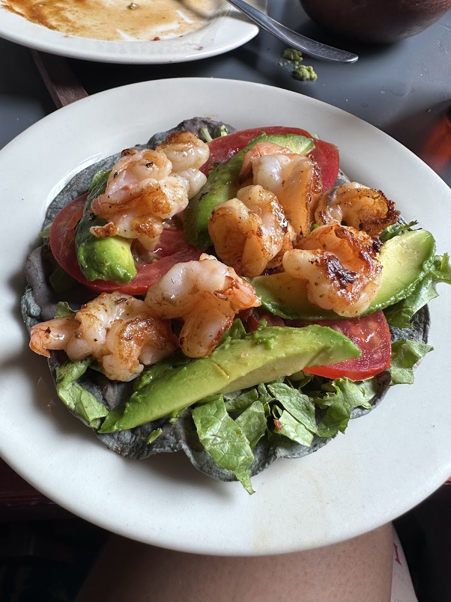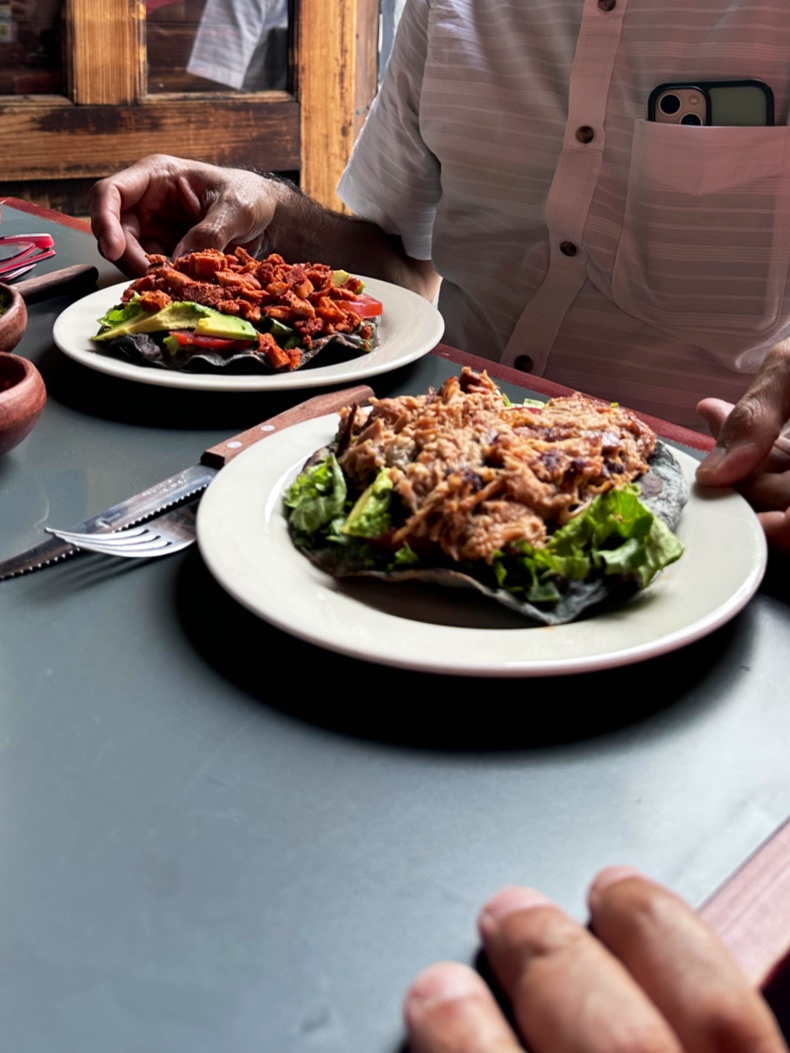 Stumbled upon this place for a quick lunch, and it did not disappoint! It’s in a centrally located area in the historic district of Oaxaca, and it was very open and uncrowded when I went for lunch. I ordered the garlic, shrimp platter, and a tostada with some hibiscus juice. Everything was fresh and delicious, I loved the flavors and how colorful everything was, you can really tell that they cook with great ingredients. The service felt a little slow, not the best place, if you are in a rush, but the food makes it all forgivable! The menu is huge and very accommodating for vegetarians if you like mushrooms.