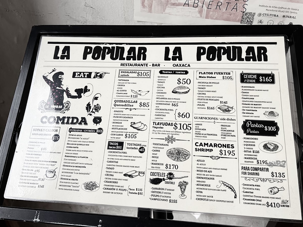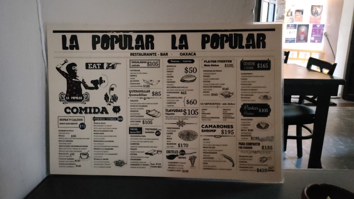 La Otra Popular offers a thoughtfully curated menu that feels both accessible and vibrant, reflecting the lively essence of Oaxaca’s culinary culture. The selection leans toward casual, satisfying dishes that work well for lunch, dinner, or any relaxed gathering where sharing and savoring fresh flavors take center stage.